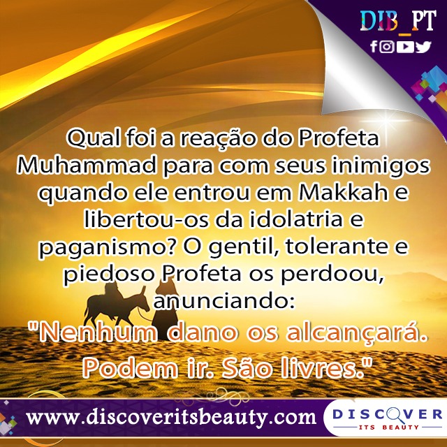 72. Qual foi a reação do Profeta Muhammad para com seus inimigos quando ele entrou em Makkah e libertou-os da idolatria e paganismo? O gentil, tolerante e piedoso Profeta os perdoou, anunciando: "Nenhum dano os alcançará. Podem ir. São livres."