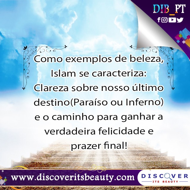 92. Como exemplos de beleza, Islam se caracteriza: Clareza sobre nosso último destino(Paraíso ou Inferno) e o caminho para ganhar a verdadeira felicidade e prazer final!